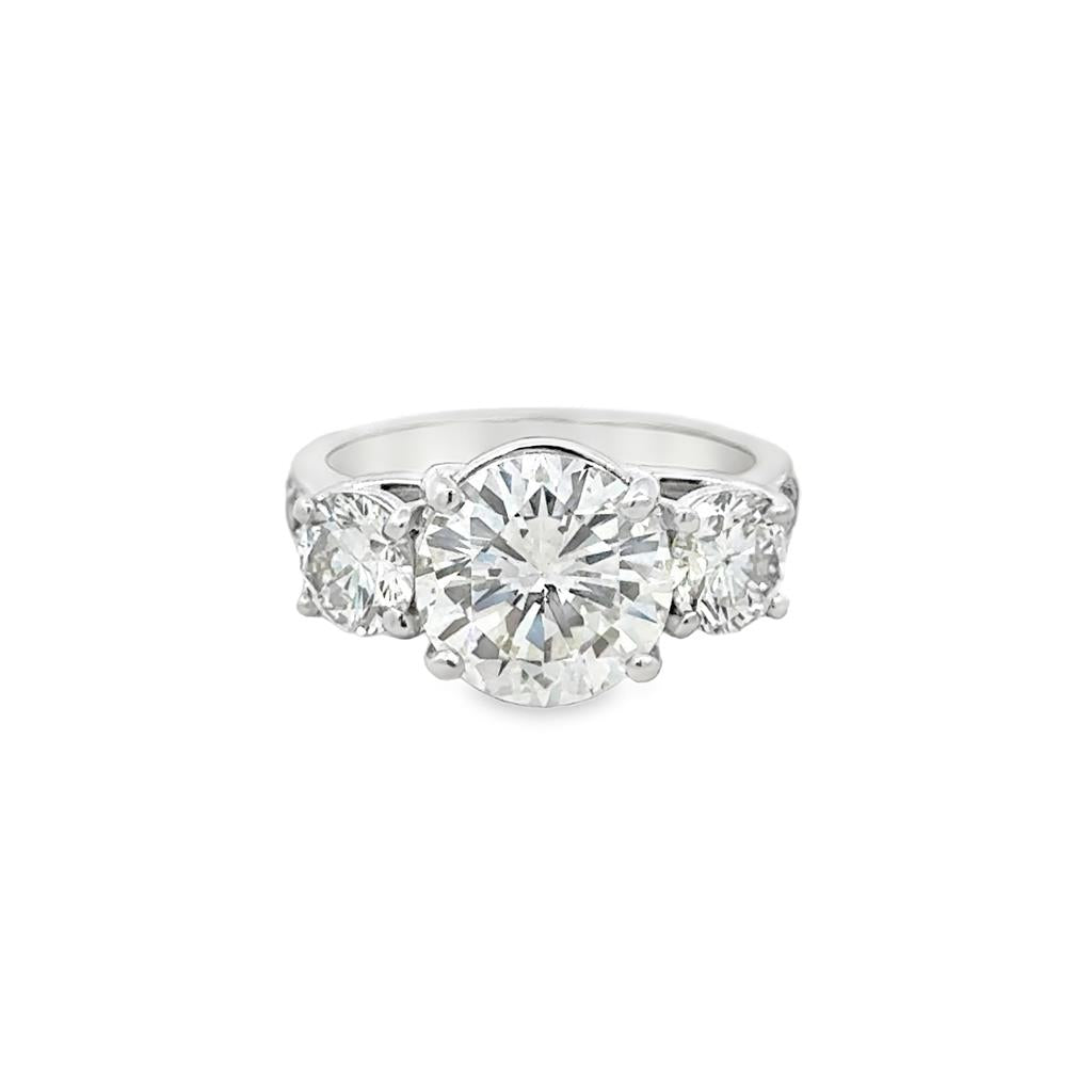 3.02 CT Round Brilliant Diamond Three-Stone Engagement Ring in 14K White Gold