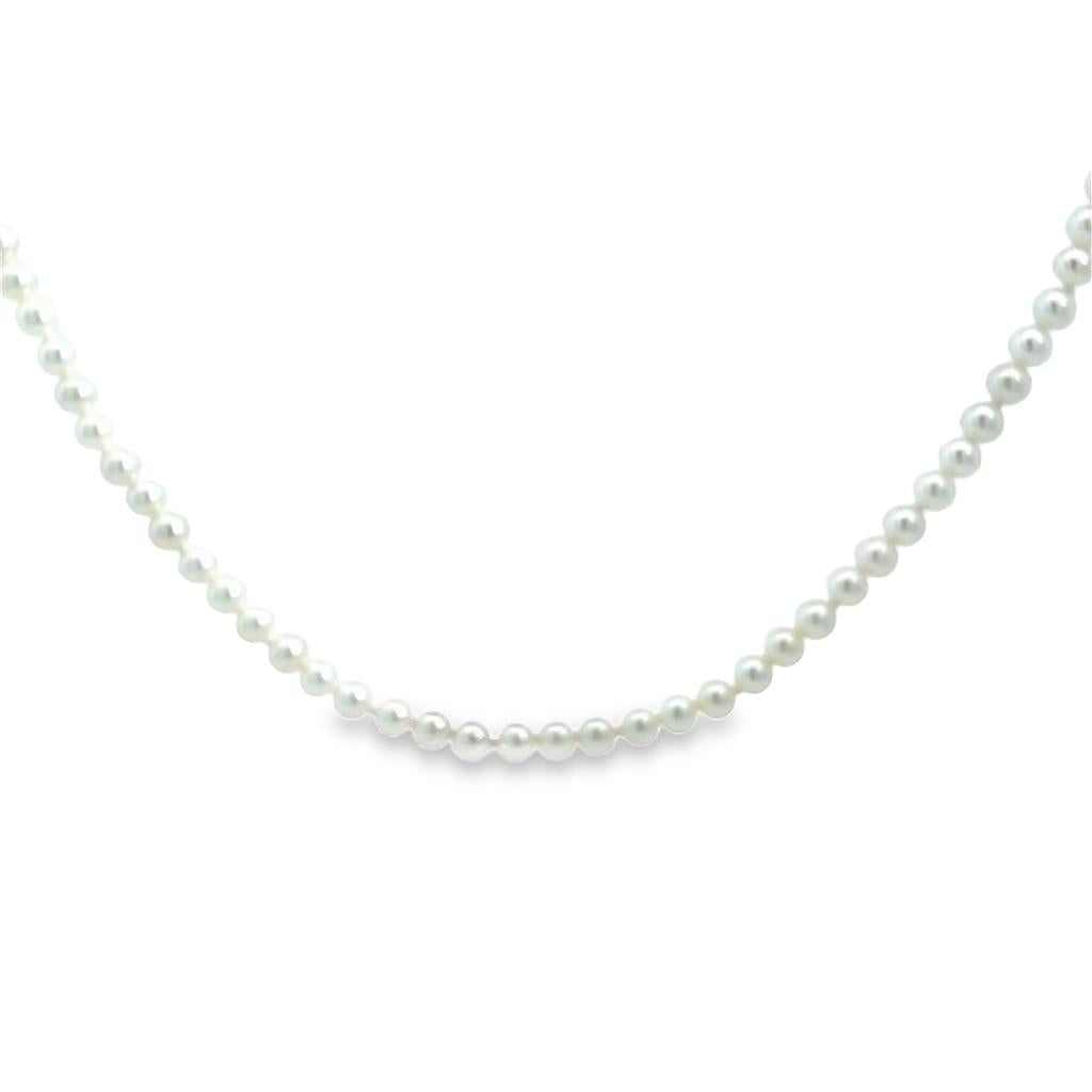 3.50mm White Pearl 14K Yellow Gold Clasp Strand Necklace – 18"