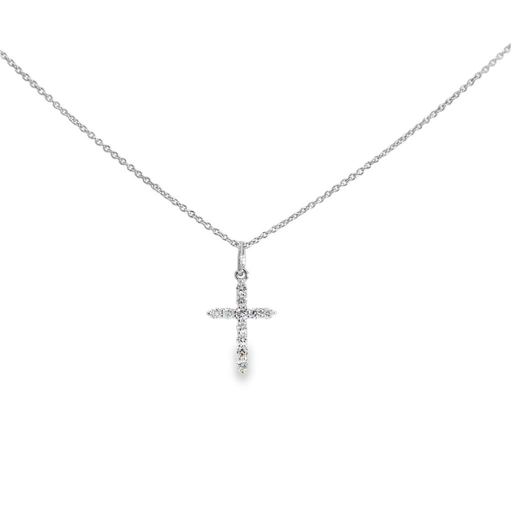 0.15 CTW Diamond 18K White Gold Mini Cross Pendant Necklace