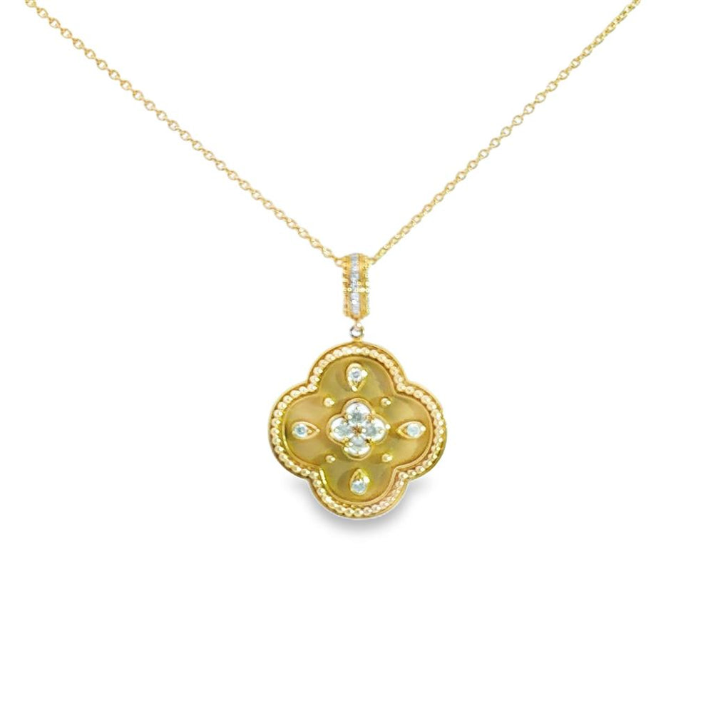 0.19 CTW Diamond 18K Yellow Gold Quatrefoil Medallion Pendant Necklace
