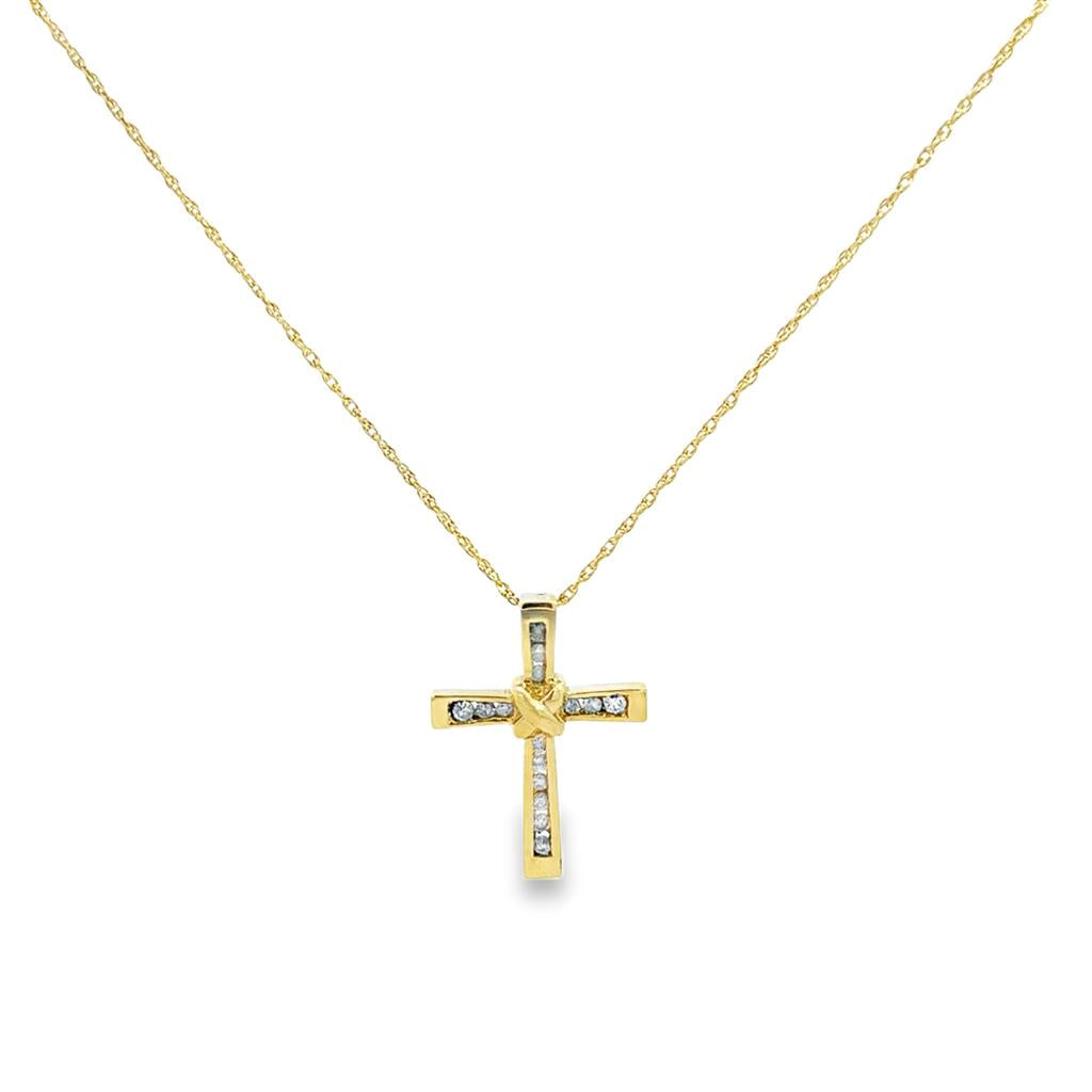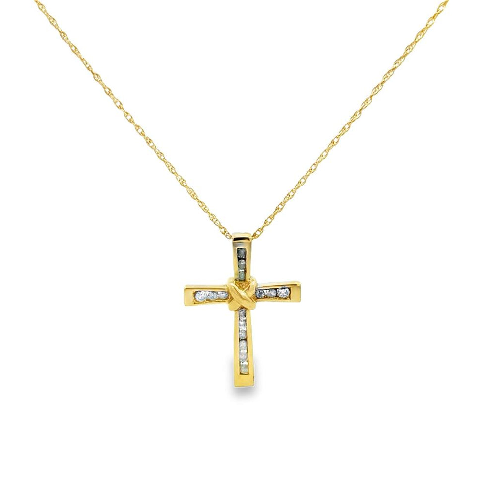 0.22 CTW Diamond 10K & 14K Yellow Gold Cross Pendant Necklace