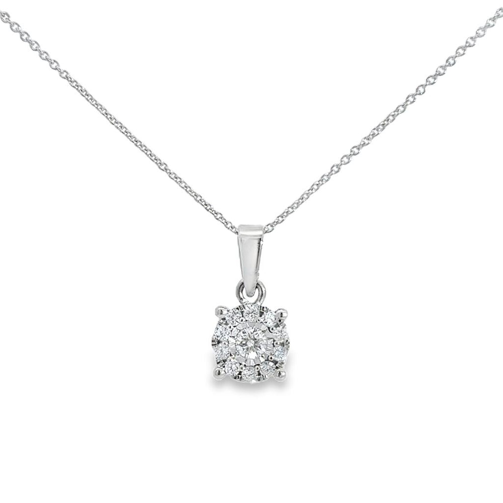 0.25 CTW Diamond Cluster Pendant Necklace in 14K White Gold