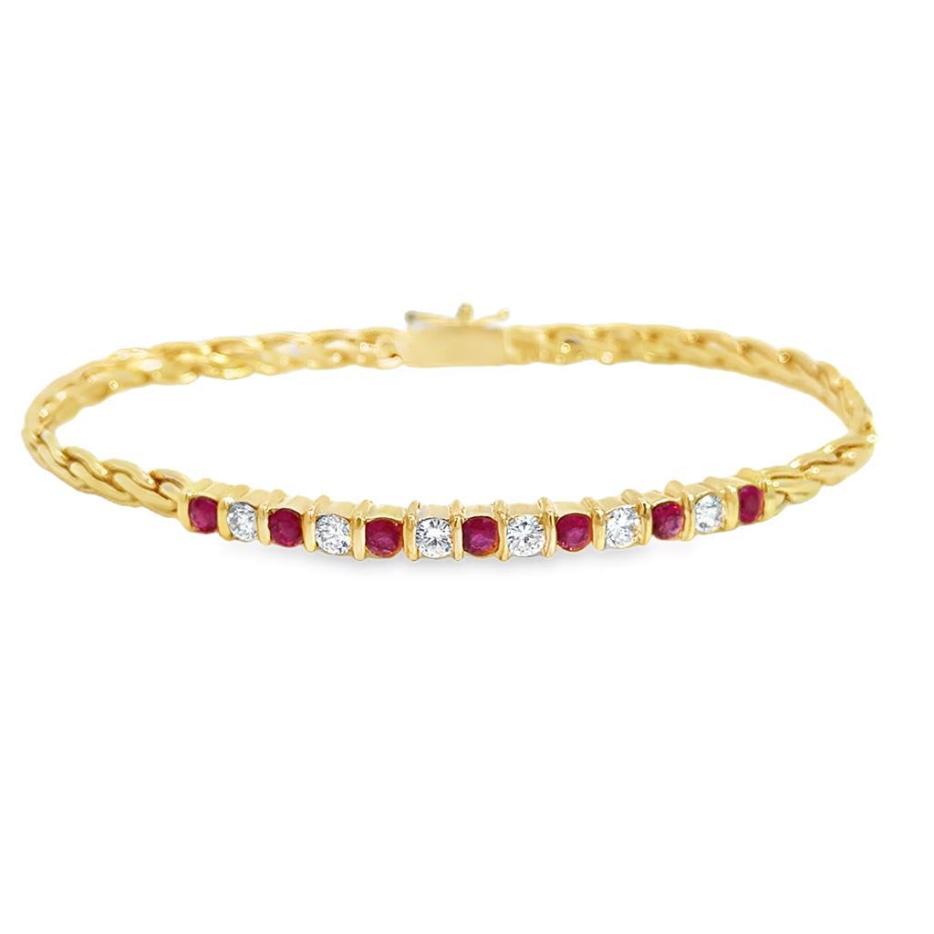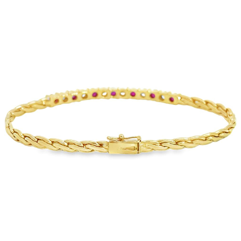 14K Yellow Gold Ruby & Diamond Flexible Bracelet – 7 1/4"