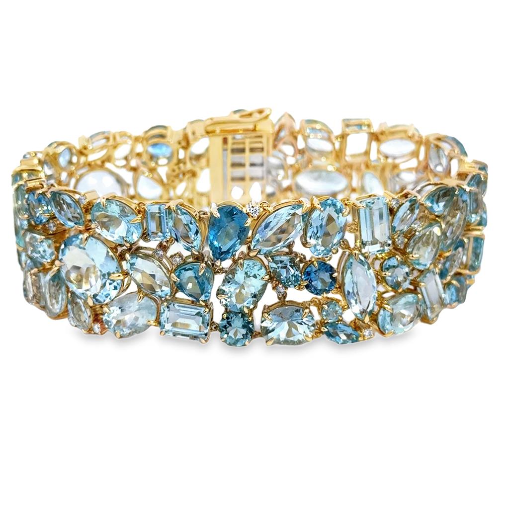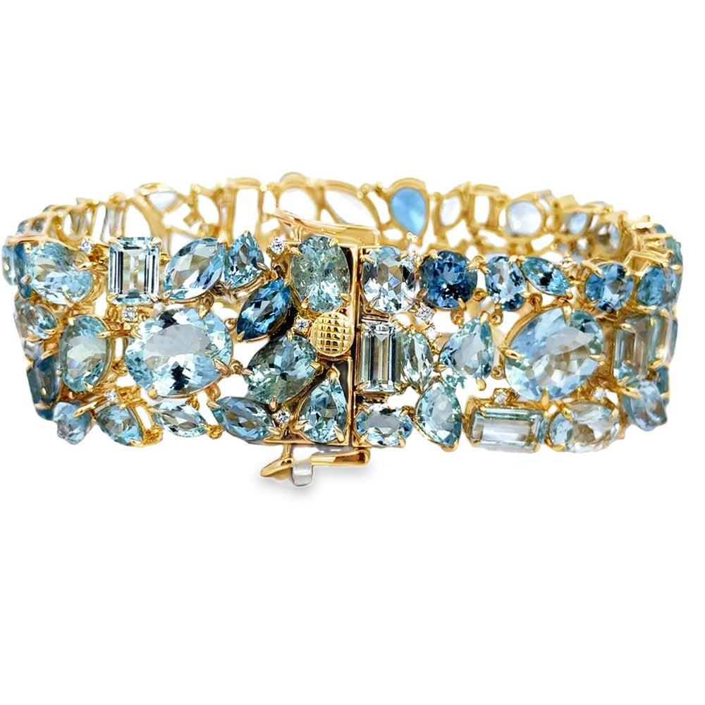 76.80 CTW Aquamarine & .50 CTW Diamond 14K Yellow Gold Wide Bracelet