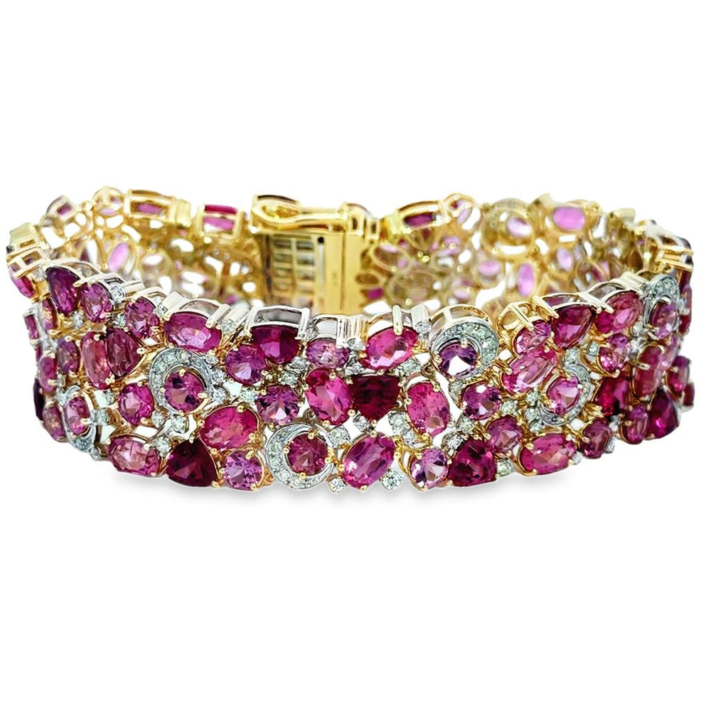 42.60 CTW Pink Tourmaline & 2.40 CTW Diamond 14K Yellow Gold Wide Bracelet