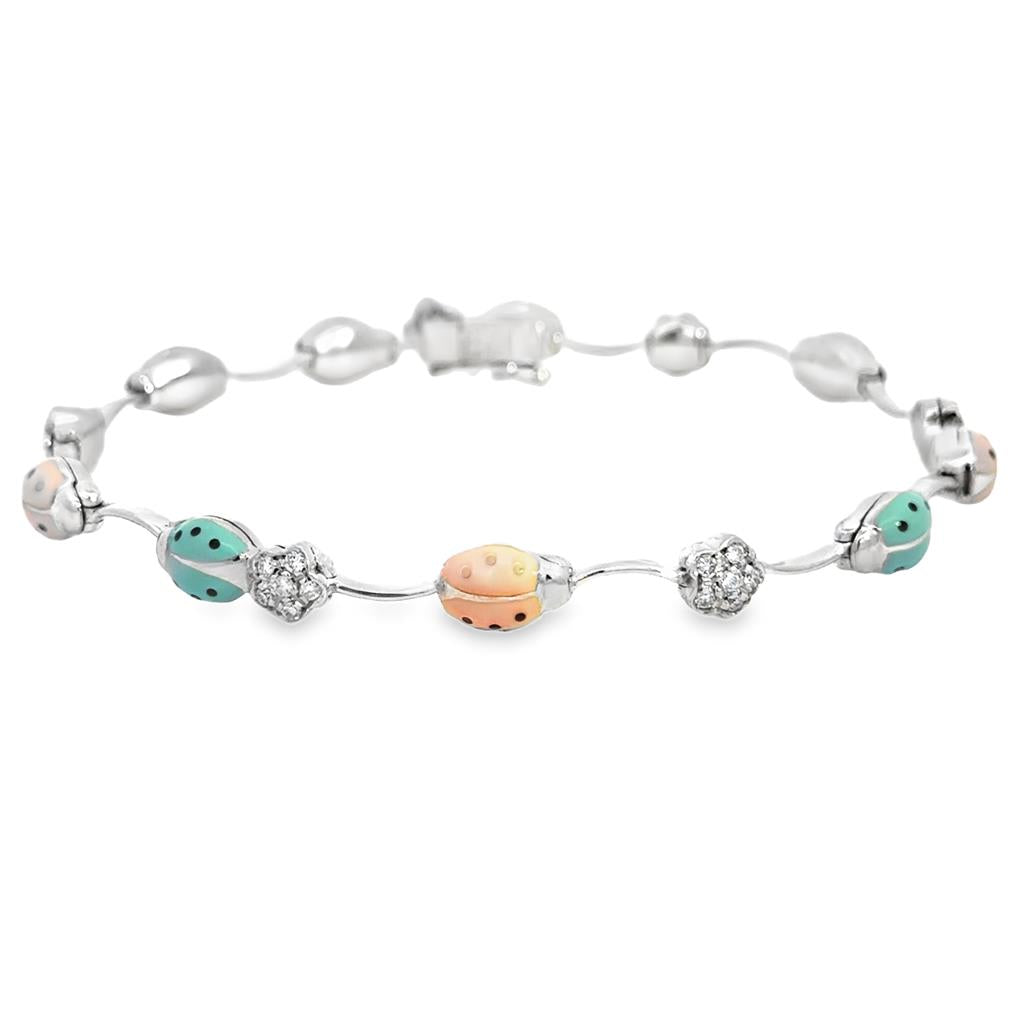 Aaron Basha 0.43 CTW Diamond Ladybug Bracelet with Enamel in 18K White Gold