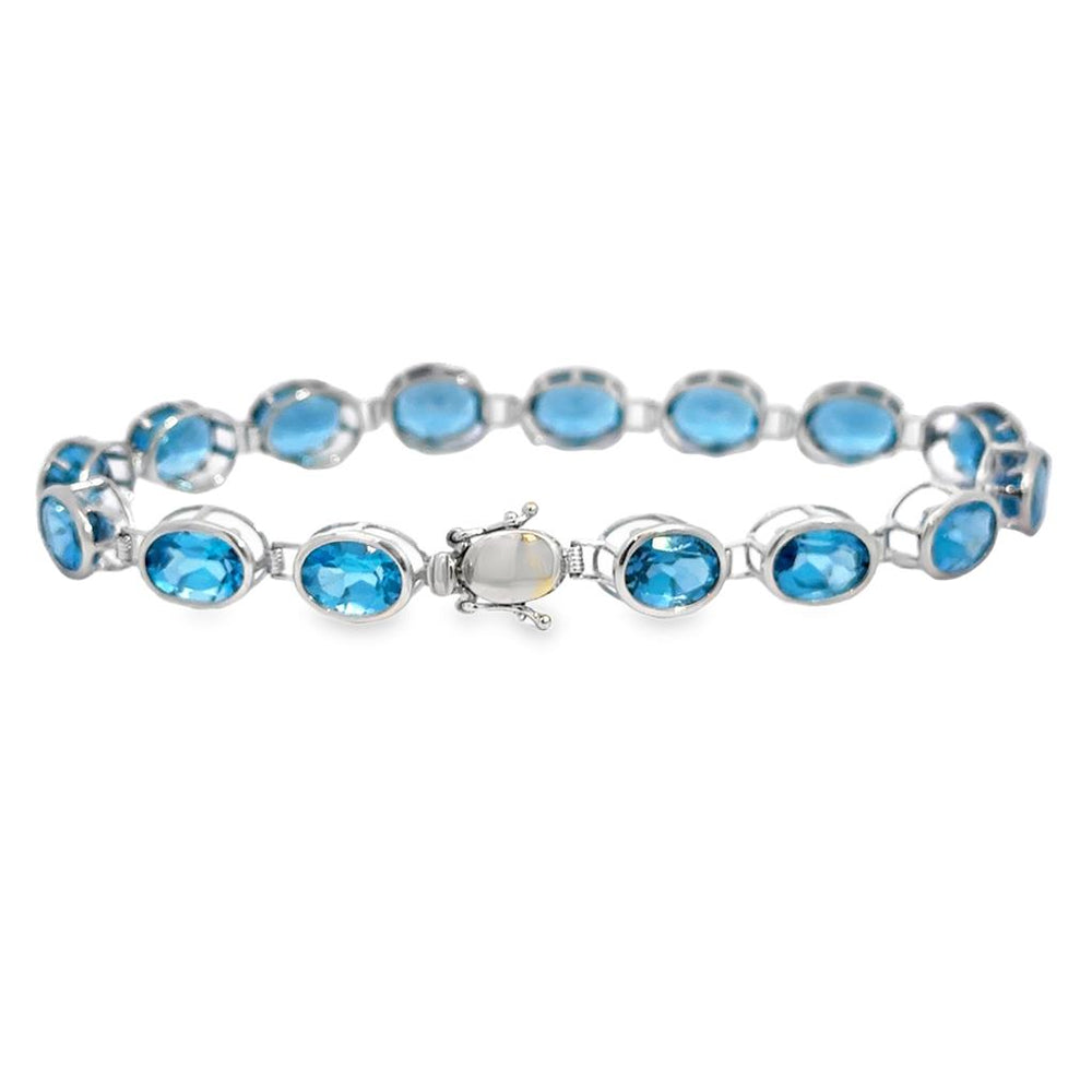 14K White Gold Blue Topaz Oval Link Bracelet