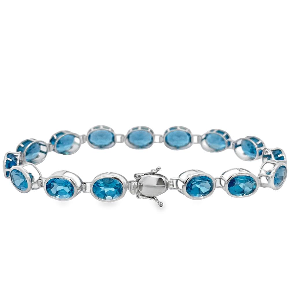 23.49 CTW Blue Topaz Oval 14K White Gold Bracelet