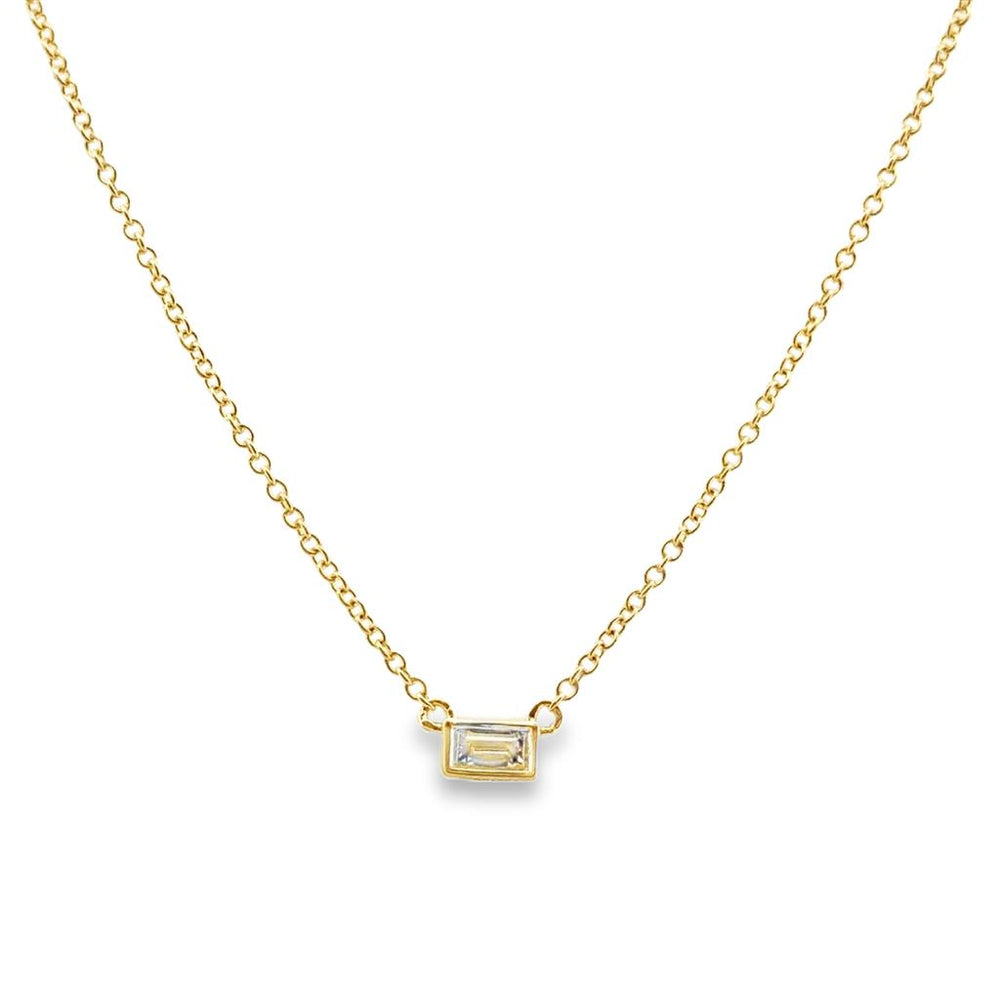 0.10 CT Baguette Diamond Pendant Necklace, 14K Yellow Gold