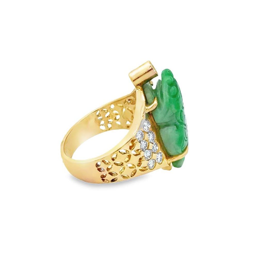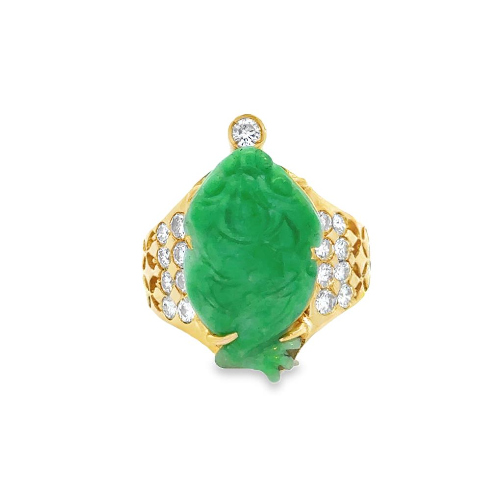 14K Yellow Gold Jade Frog Diamond Ring – 0.55 CTW