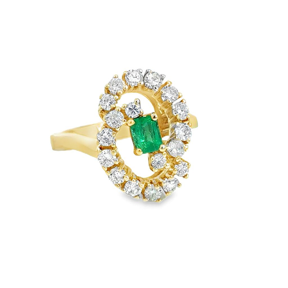 0.50 CTW Diamond & Emerald 14K Yellow Gold Open Oval Ring