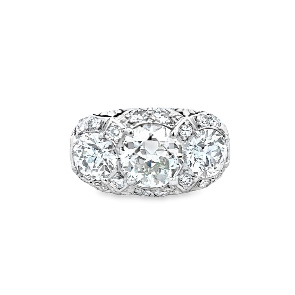 Art Deco Platinum 3-Stone Diamond Ring – 1.42 CT Center, 1.50 CTW Sides