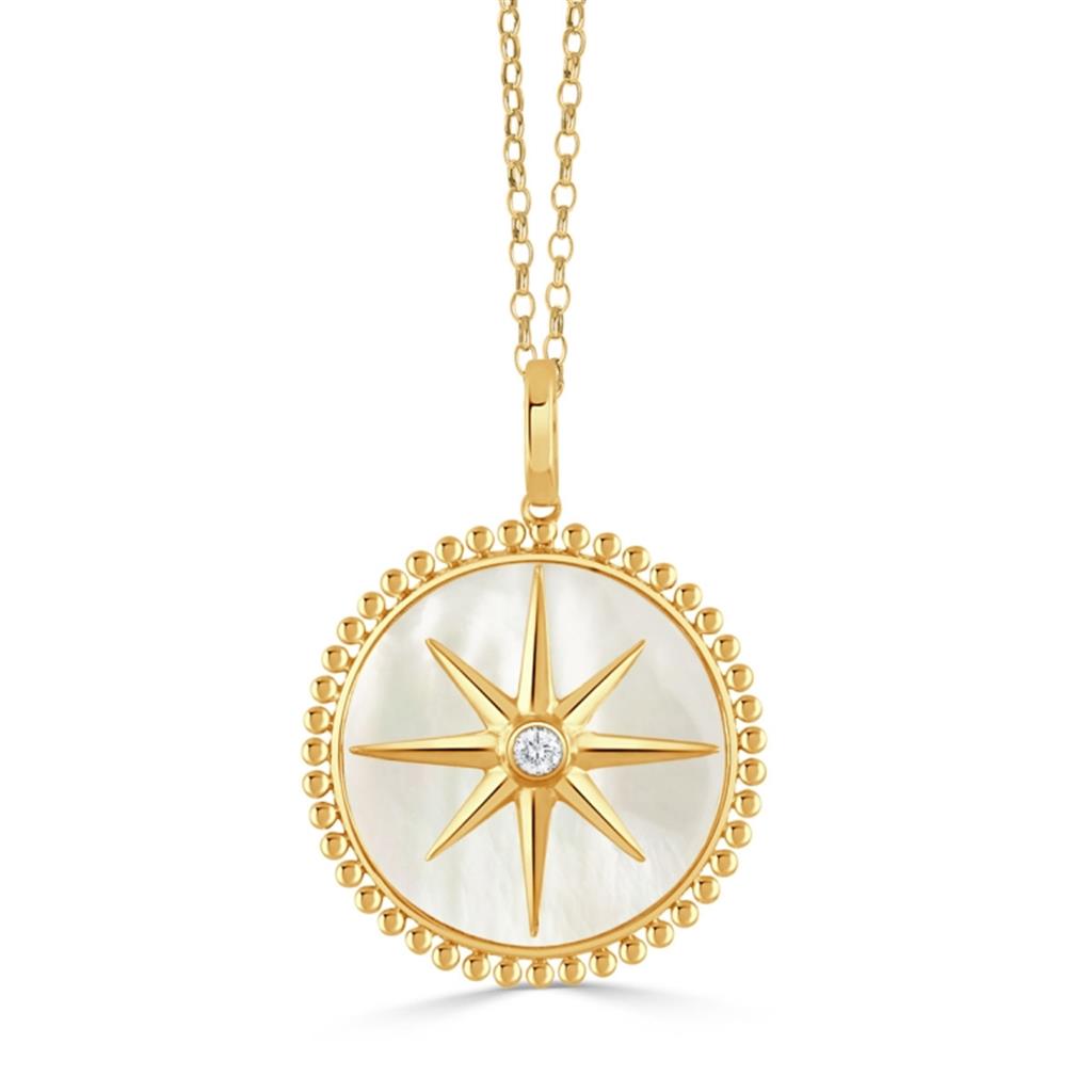 Diamond & Mother of Pearl 18K Yellow Gold Compass Medallion Necklace