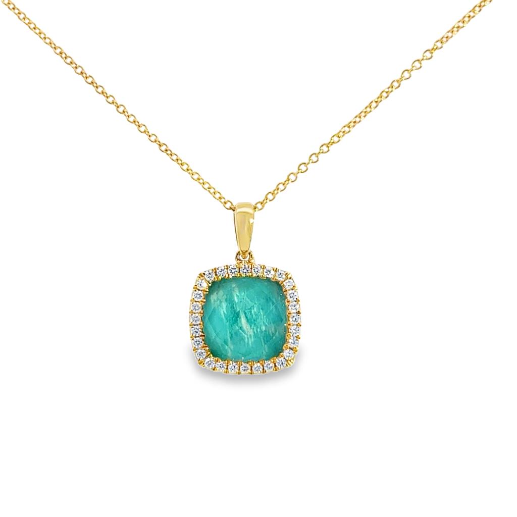 Doves 0.14 CTW Diamond & 3.01 CT Clear Quartz over Amazonite 18K Yellow Gold Pendant Necklace