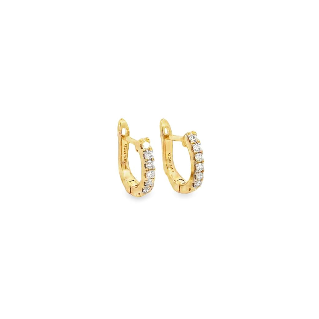 These elegant 14K yellow gold mini hoop earrings feature 0.13 CTW of round diamonds set along the front, creating a bright, refined sparkle. The warm gold enhances the brilliance of the diamonds, giving these hoops a timeless and versatile look. Measuring approximately 9.5mm in total length and 1.5mm in width, they offer a delicate yet noticeable presence. Brand new and crafted for everyday elegance.