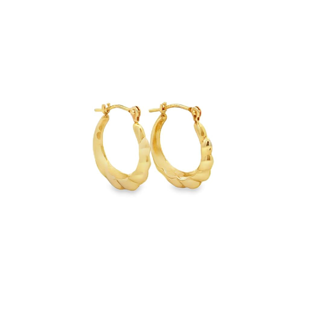 Classic and elegant, these 14K yellow gold hoop earrings feature a softly twisted design that adds a modern touch to a timeless style. Measuring approximately 15.5mm in diameter, they are the perfect size for everyday wear — lightweight yet substantial enough to make a statement. Finished with secure hinged backs for comfortable, all-day wear.