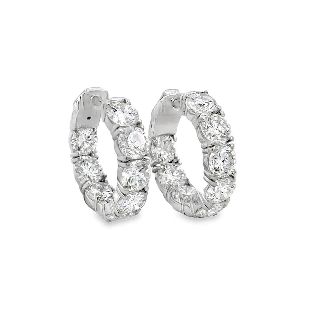 These exquisite hoop earrings are crafted in 14K white gold and adorned with 9.63 carats total weight of brilliant round-cut diamonds. Measuring 5mm in width and 20mm in diameter, these hoops feature a secure hinge opening for both comfort and elegance. A dazzling statement piece, they offer timeless sophistication and radiant sparkle for any occasion.
