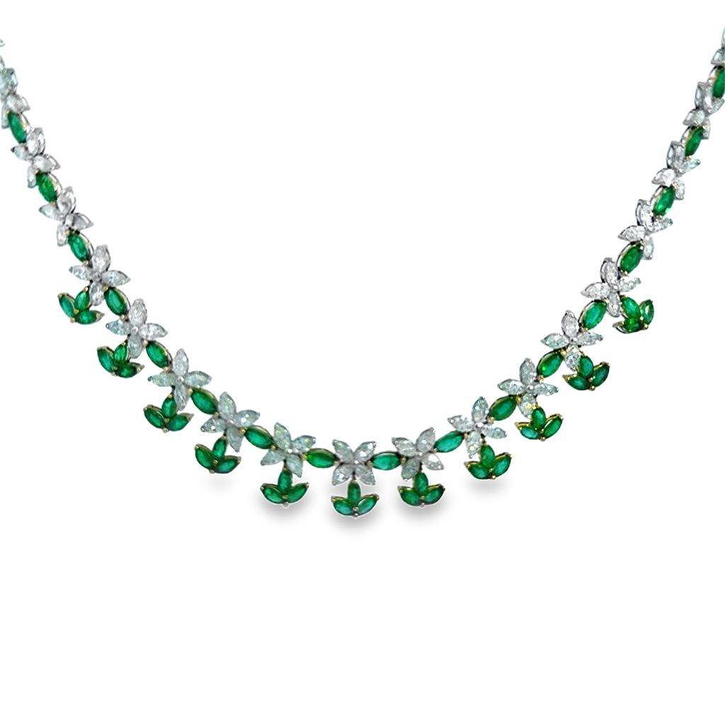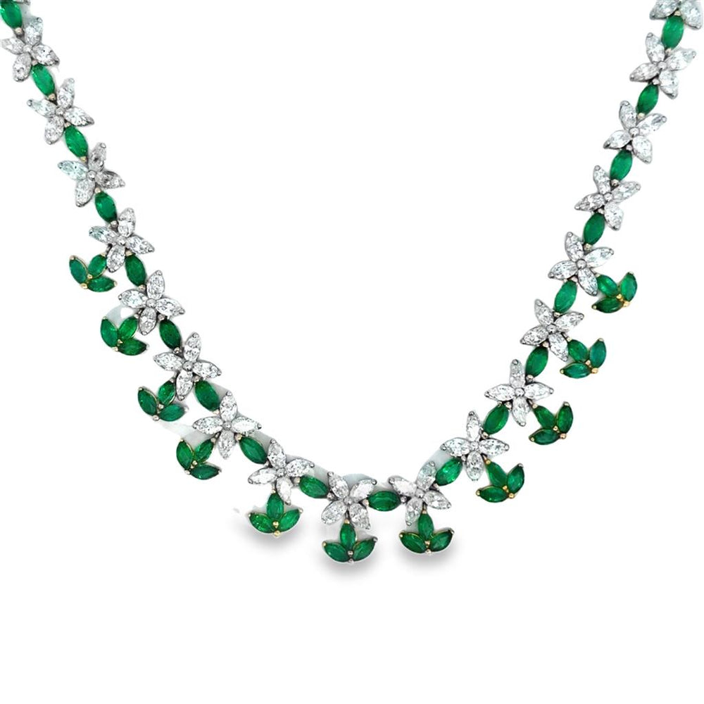14.32 CTW Marquise Diamond & 9.03 CTW Emerald Platinum Leaf Link Necklace