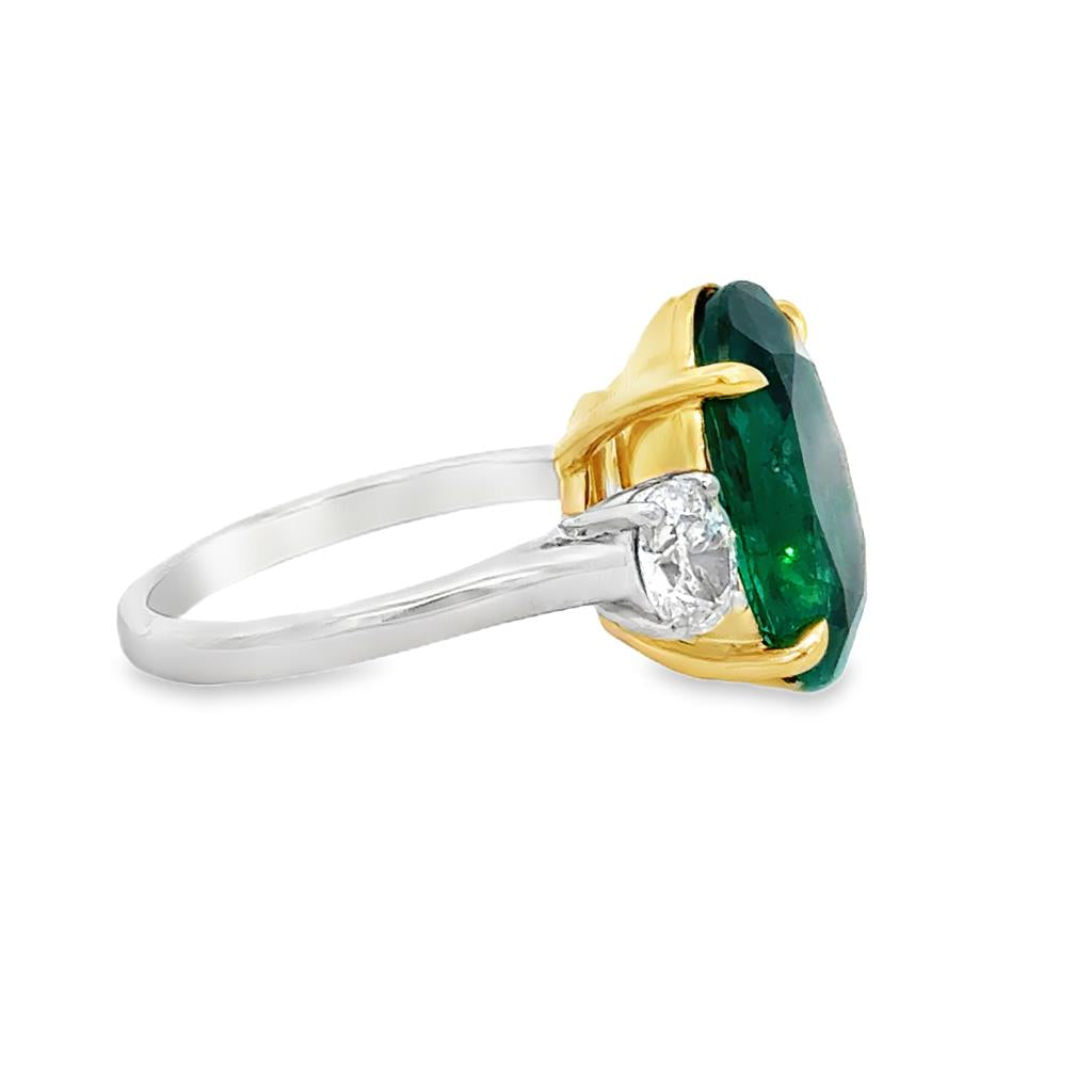7.05 CT Oval Emerald & 0.70 CTW Diamond Platinum & Yellow Gold 3 Stone Ring - AGL