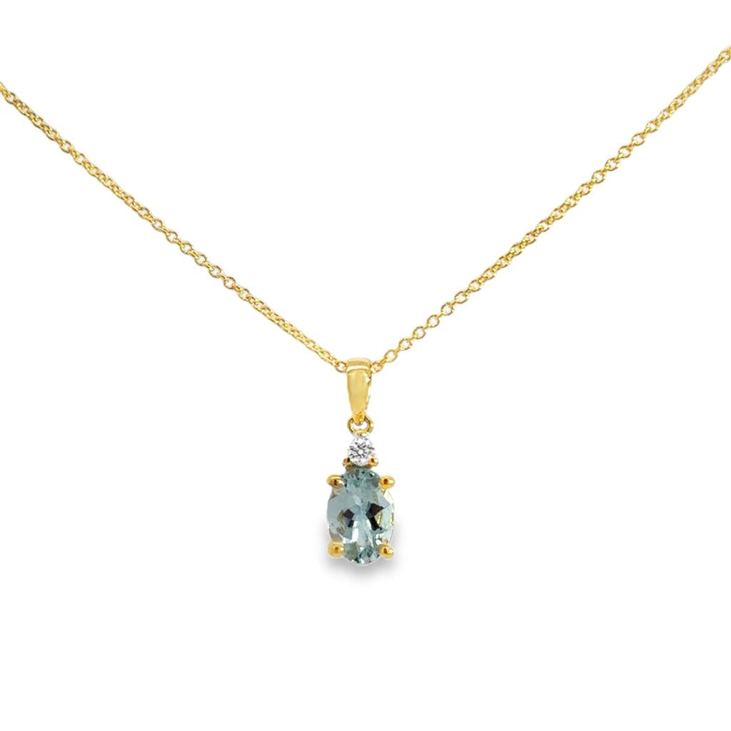 Oval Aquamarine & 0.04 CT Diamond Pendant Necklace in 14K Yellow Gold