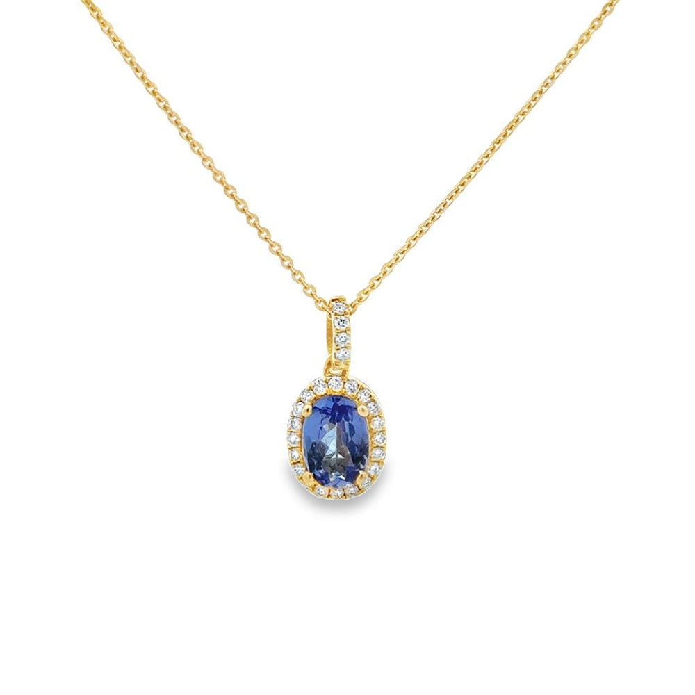 Tanzanite and 0.11 CTW Diamond 14K Yellow Gold Halo Pendant Necklace