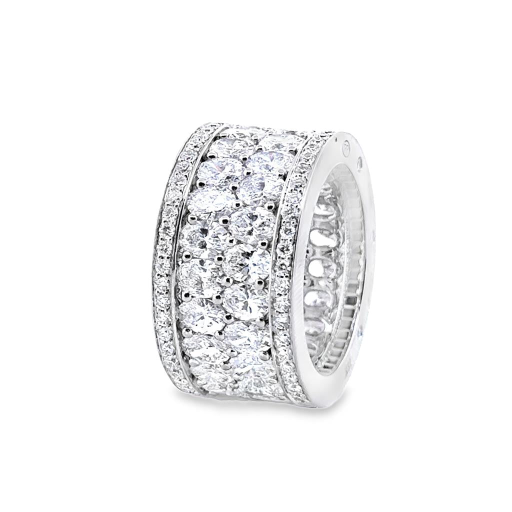 This luxurious eternity ring by Robert Procop radiates glamour with its captivating display of diamonds. Featuring 7.35 carats of oval and round brilliant diamonds set in 18K white gold, this ring exudes timeless elegance and sophistication. The diamonds are meticulously arranged in a seamless eternity design, symbolizing never-ending beauty and love. A stunning statement piece, perfect for special occasions or as an iconic addition to any jewelry collection.
