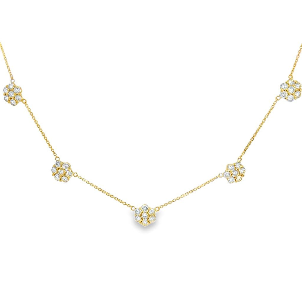 3.01 CTW Diamond Floret Station Necklace in 14K Yellow Gold