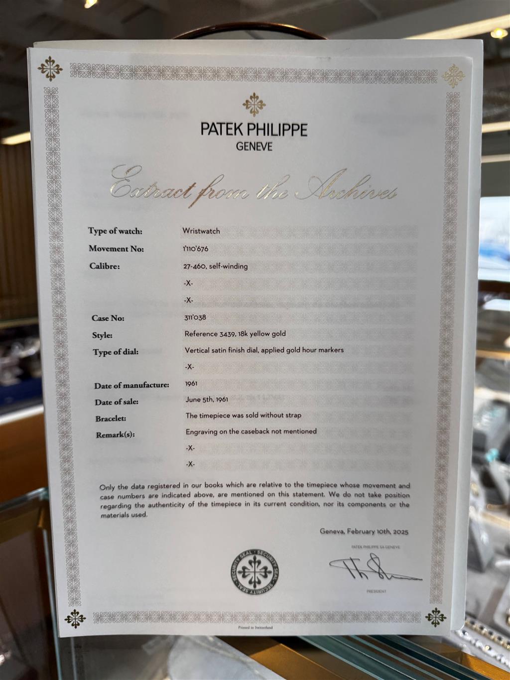 This vintage Patek Philippe Calatrava Ref. 3439 is a refined example of timeless Swiss watchmaking. Crafted in 18K yellow gold, the 32.5mm case frames a minimalist silver-tone dial with elegant gold baton hour markers and a small seconds subdial. The automatic movement ensures precision, while the original Patek Philippe leather strap and buckle add an extra touch of authenticity and classic sophistication. A true collector’s piece, this Calatrava embodies the brand’s legacy of understated elegance and horological excellence.