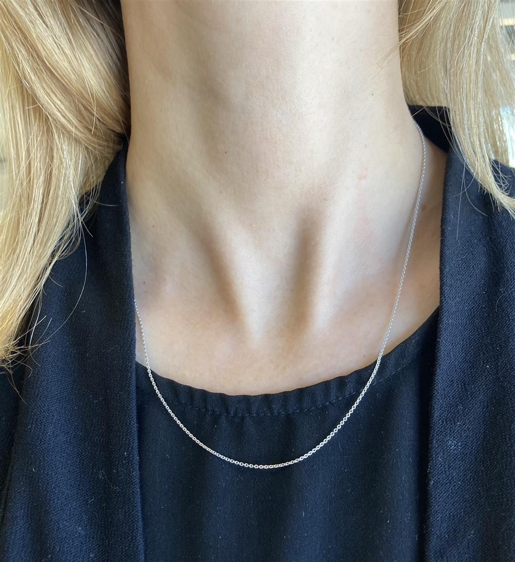 This classic 14K white gold chain features a medium cable link design, offering a timeless and versatile look ideal for everyday wear or pairing with a pendant. Measuring approximately 1.05mm in width and 18 inches in length, it provides a delicate yet durable profile. Its polished white gold finish adds a refined touch of elegance, making it a must-have essential for any fine jewelry collection.