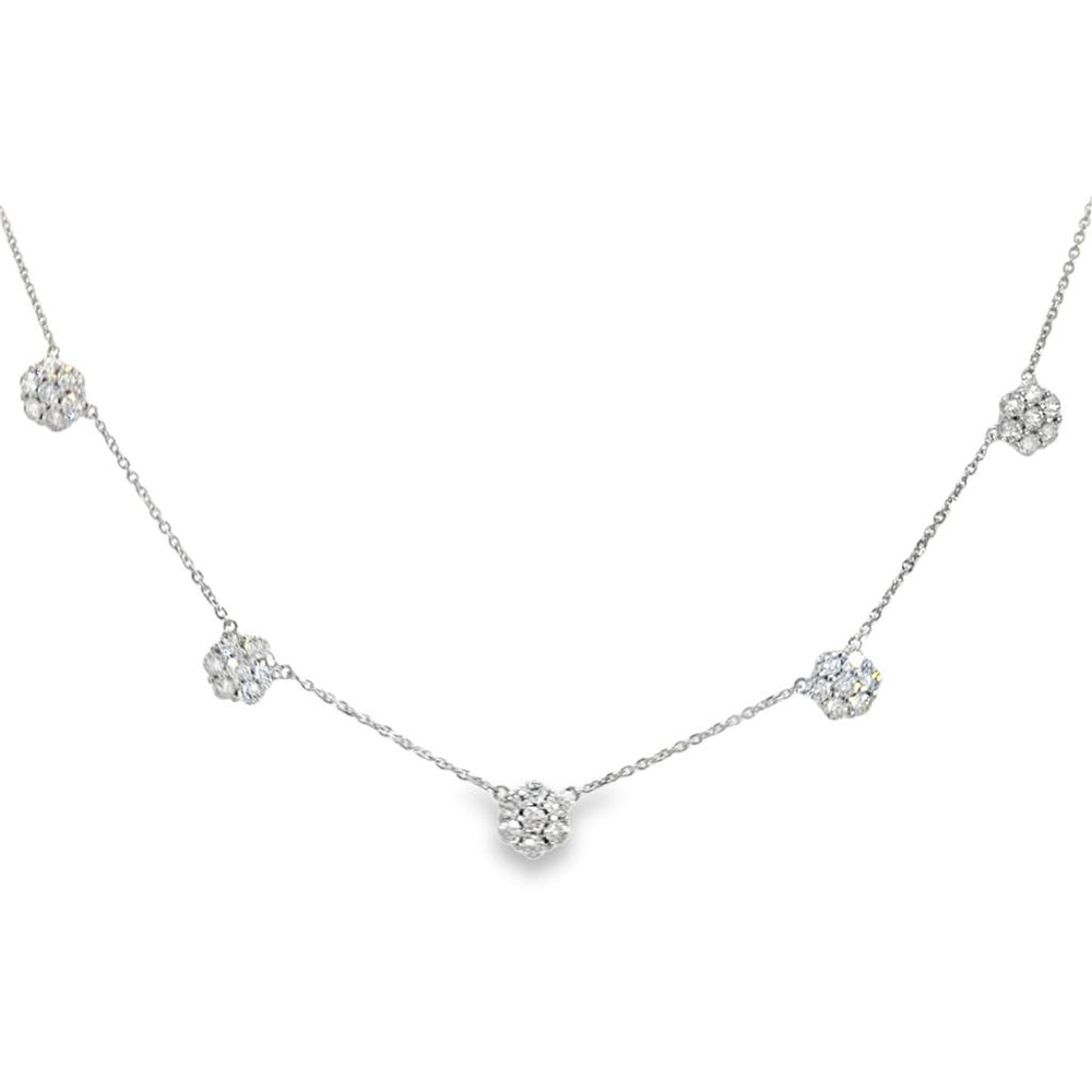 2.00 CTW Diamond Floret Station Necklace in 14K White Gold