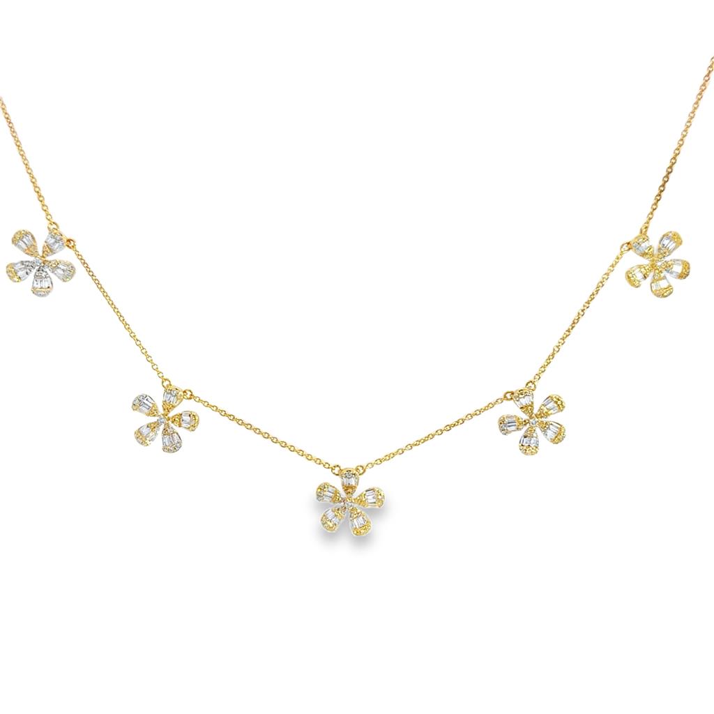 1.00 CTW Diamond Flower Station Necklace in 14K Yellow Gold