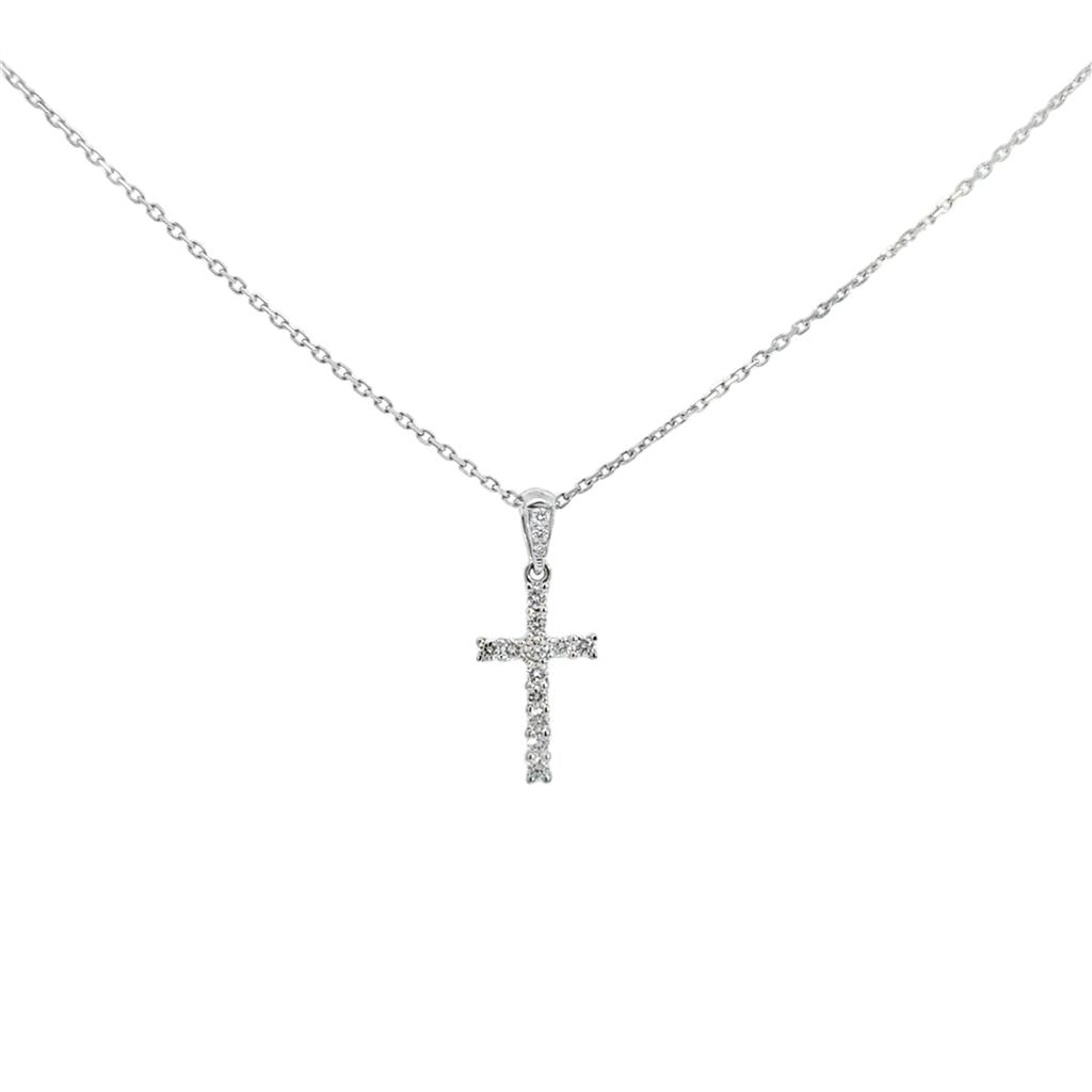 0.19 CTW Diamond 18K White Gold Mini Cross Pendant Necklace