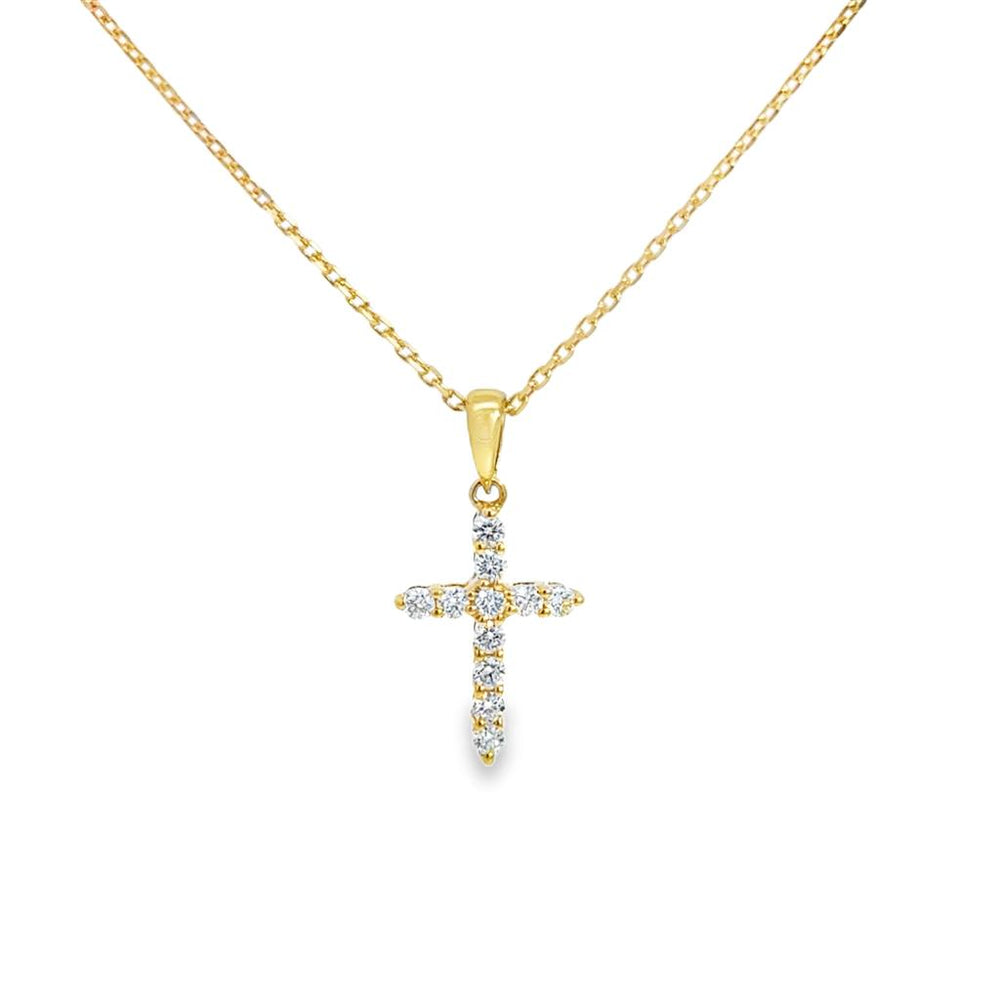 0.23 CTW Diamond 18K Yellow Gold Mini Cross Pendant Necklace