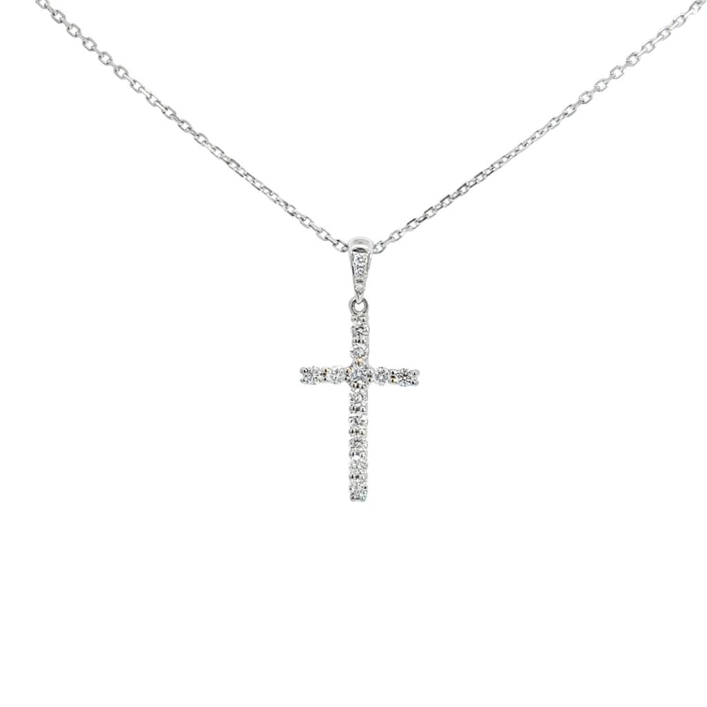 0.23 CTW Diamond 18K White Gold Cross Pendant Necklace