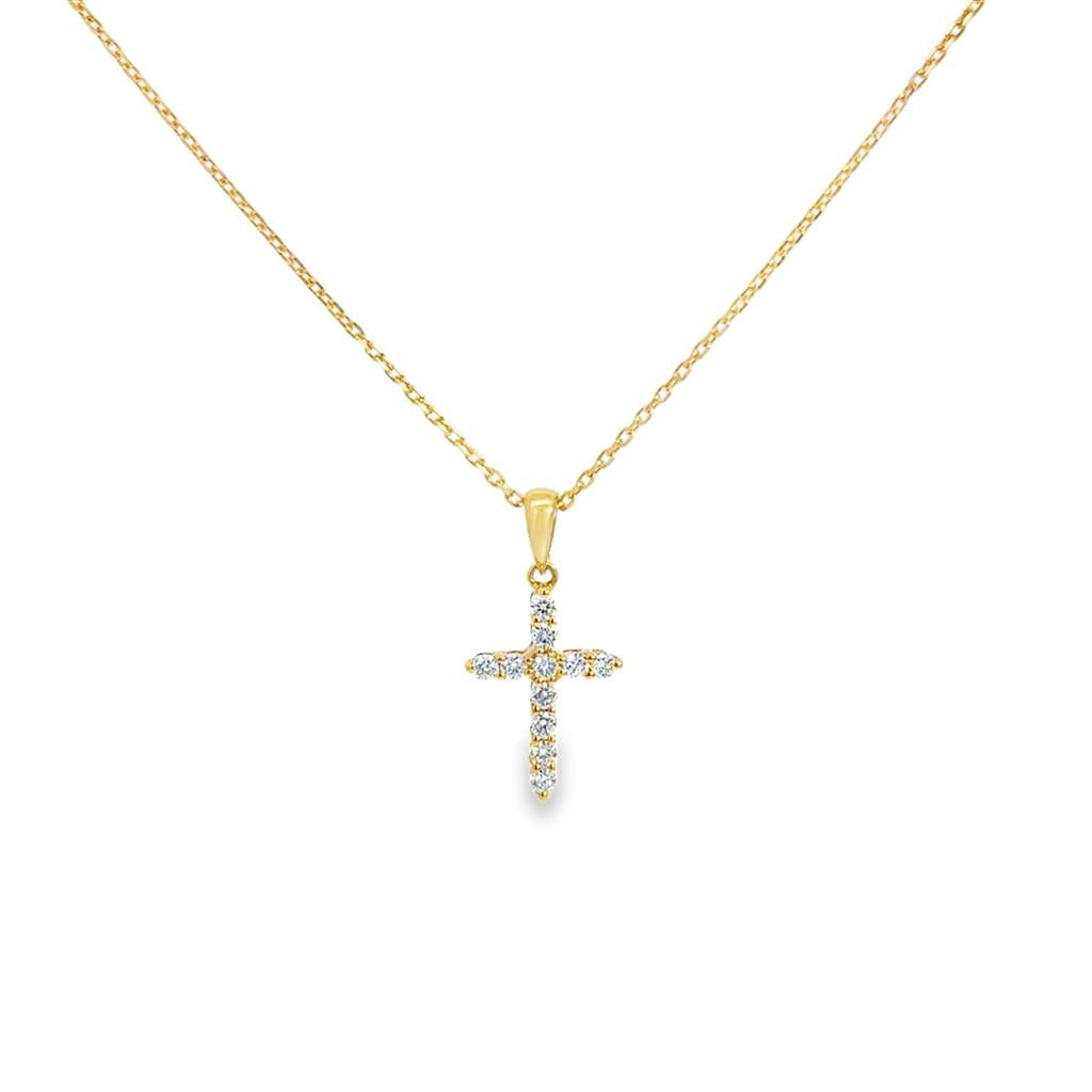 0.25 CTW Diamond 14K Yellow Gold Mini Cross Pendant Necklace
