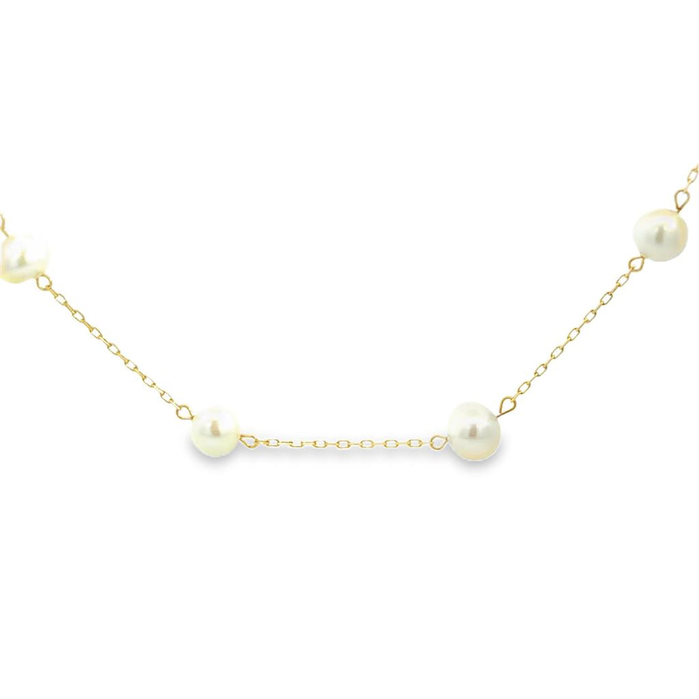10K Yellow Gold Pearl-by-the-Inch Chain Necklace with 6mm White Pearls