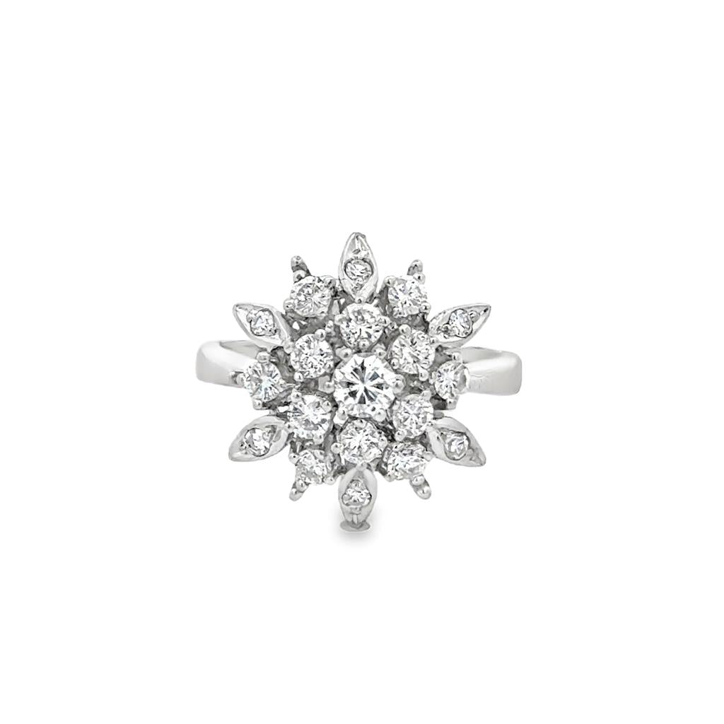 0.60 CTW Diamond 14K White Gold Cluster Flower Ring