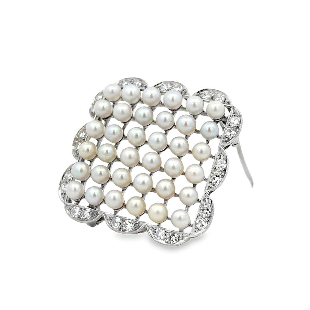 0.72 CTW Diamond and Pearl 14K White Gold Square Brooch Pin