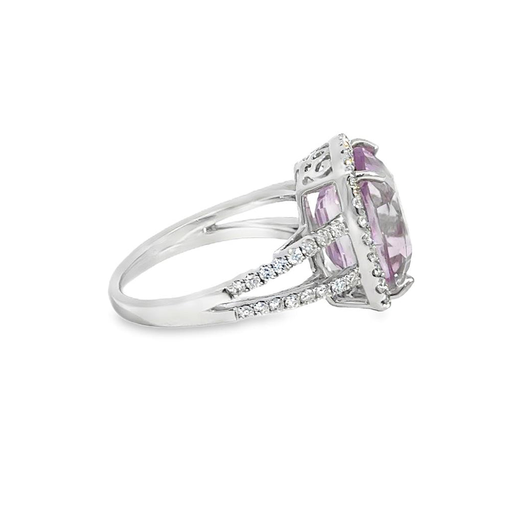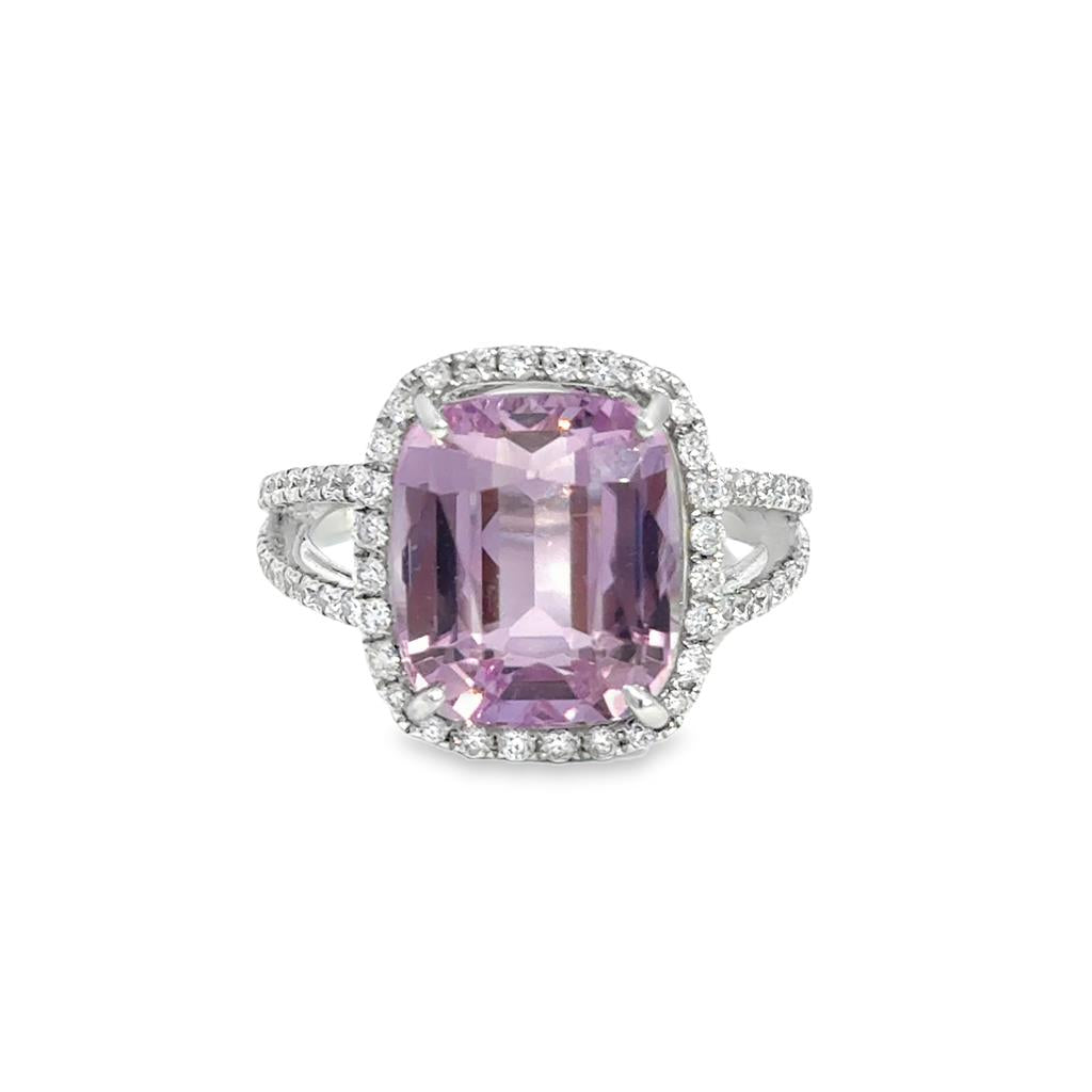 7.04 CT Cushion Cut Kunzite & 0.60 CTW Diamond 14K White Gold Halo Ring