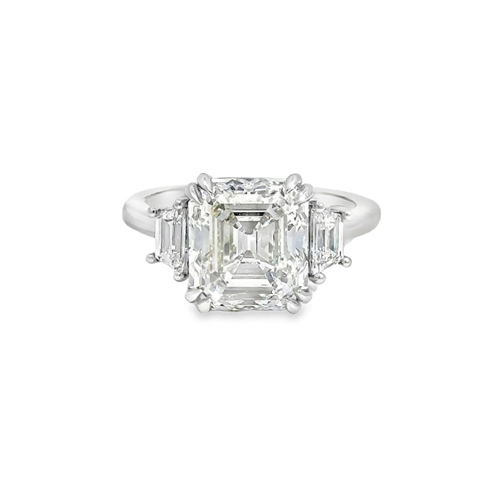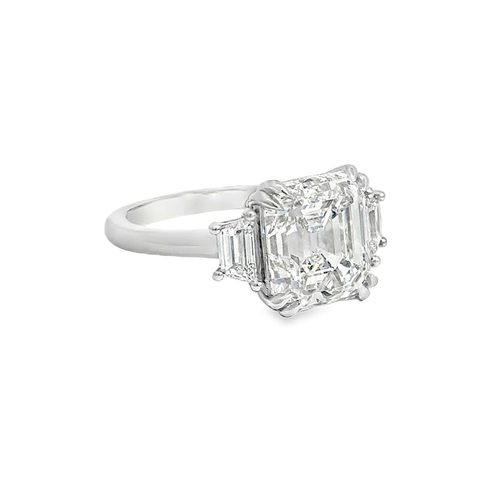 5.30 CT Emerald Cut Diamond Platinum Three-Stone Engagement Ring