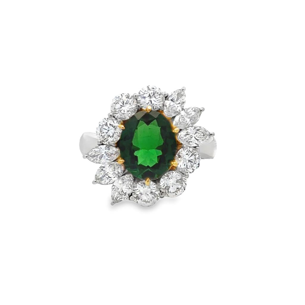 2.14 CT Oval Tsavorite & 2.09 CTW Diamond Platinum Ring