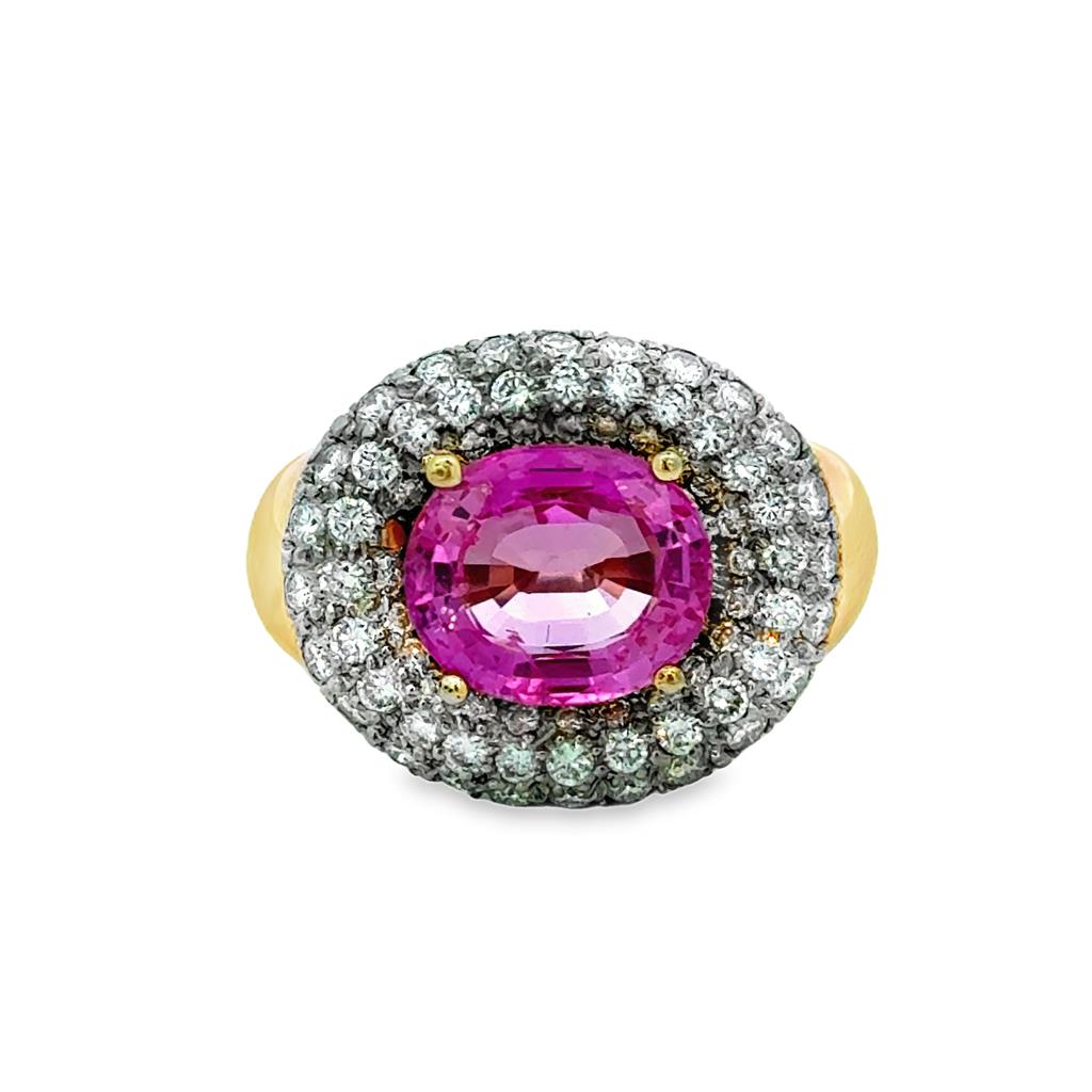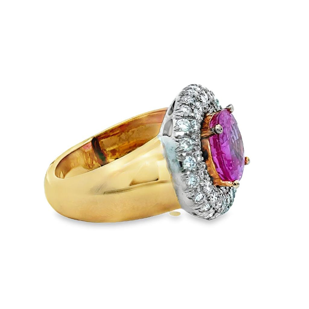 3.50 CT Pink Oval Sapphire & .80 CTW Diamond Halo Ring 18K Two-Tone Gold