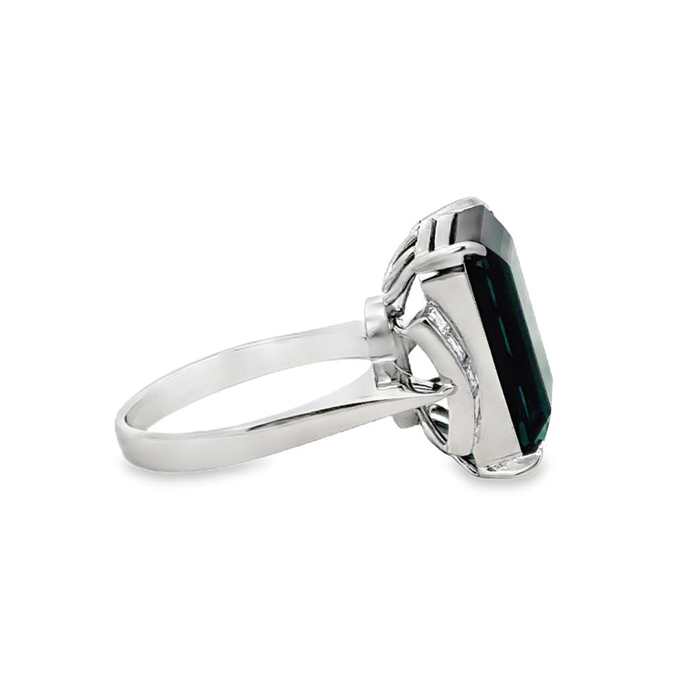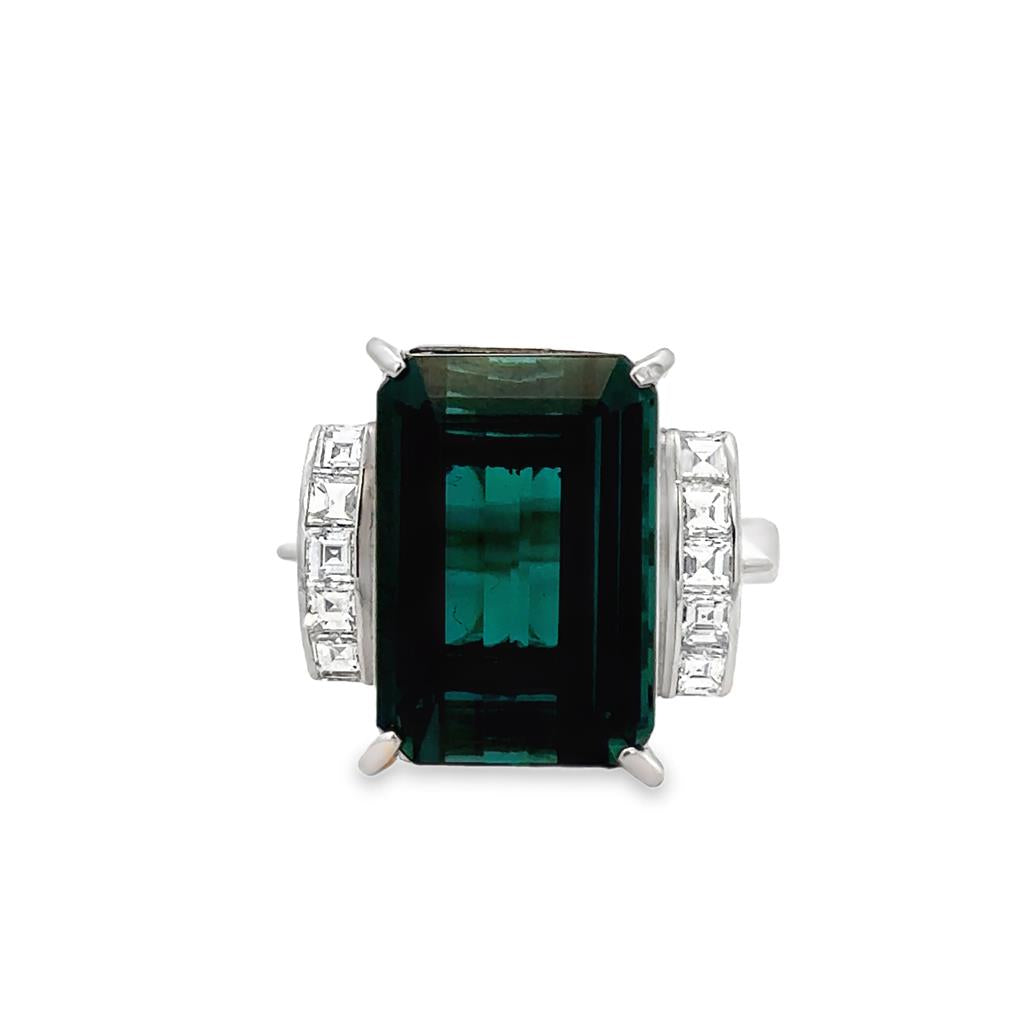 10.87 CT Dark Green Tourmaline & .64 CTW Diamond Platinum Ring