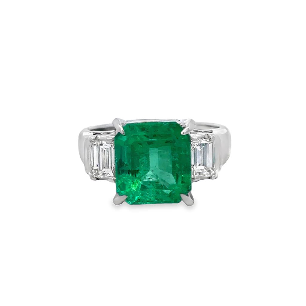 4.33 CT Emerald & .74 CTW Baguette Diamond Platinum Ring
