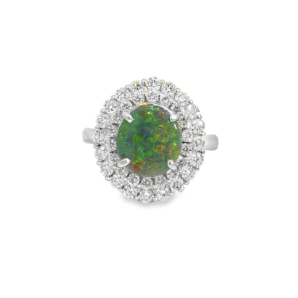 1.81 CT Australian Black Opal & 1.01 CTW Diamond Double Halo Platinum Ring