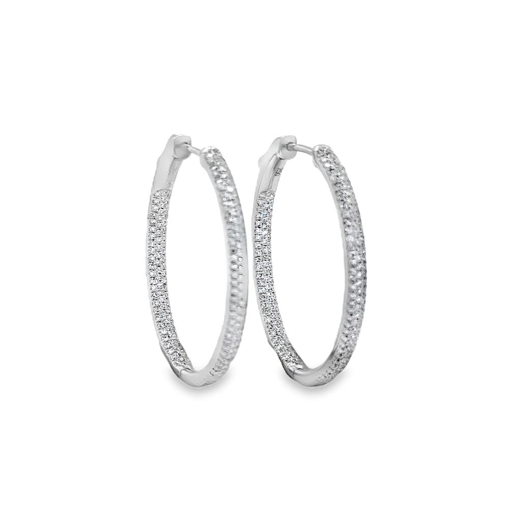 Pre-Owned 1.30 CTW Diamond 19mm 14K White Gold Hoop Earrings