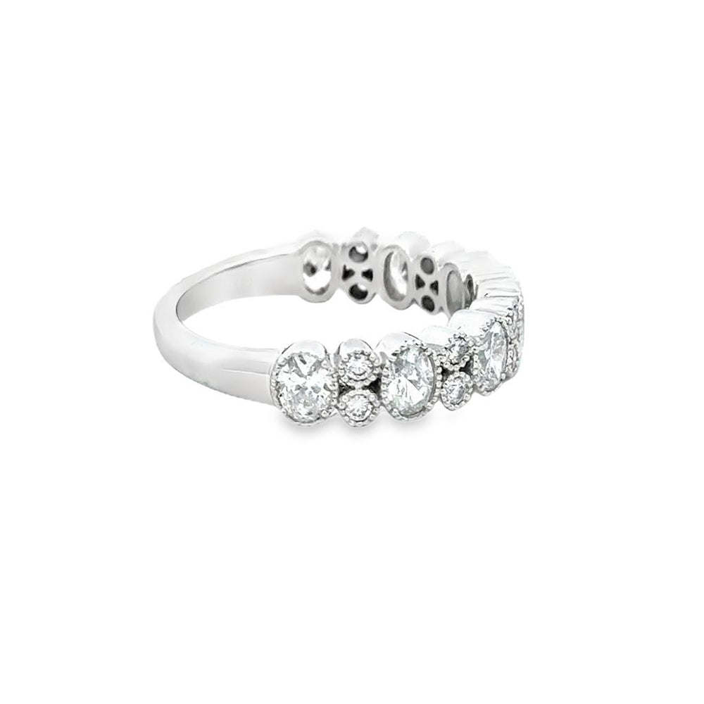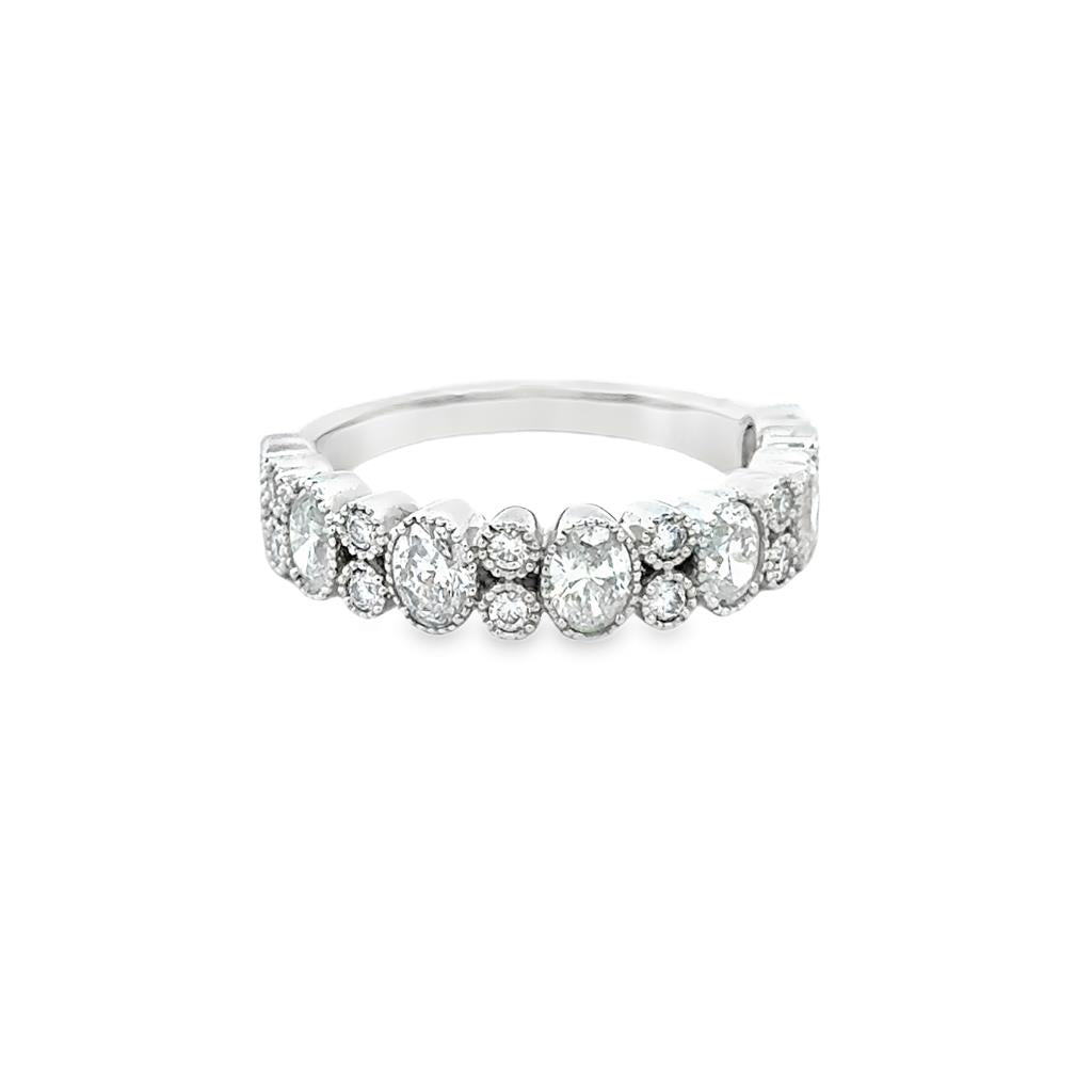 1.20 CTW Oval and Round Diamond Band Ring in 14K White Gold