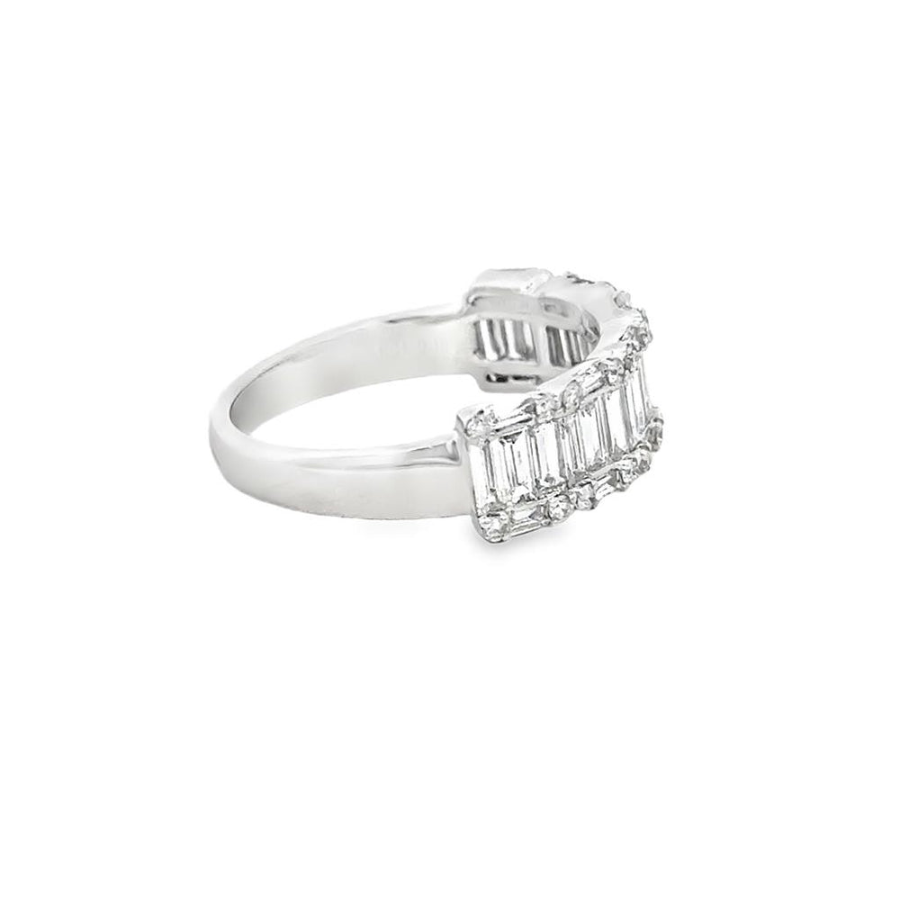 1.21 CTW Diamond Baguette and Round Wide Band Ring in 14K White Gold